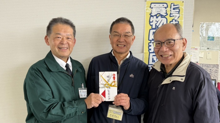 本年も、レジ袋無料配布中止に伴う収益金1年分(2024年1月~12月分)に弊社の志を追加いたしまして100.000円を NPO「買物くらし応援団」(田向晴夫代表)に寄付いたしました。
